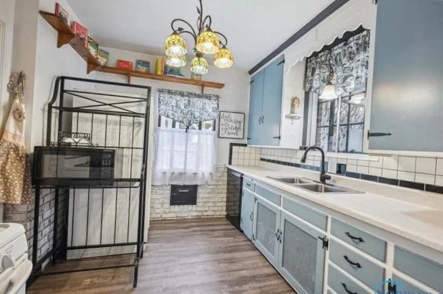 Bright and tidy, the kitchen features dishwasher, gas range with oven, range hood with light & exhaust fan, full sized refrigerator, microwave, and a full complement of pots/pans, cooking utensils, and serving dishes 10+ people.